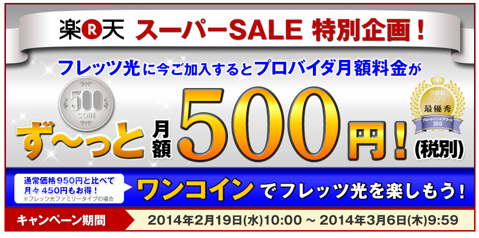 楽天ブロードバンド: 楽天スーパーSALE特別企画 楽天ブロードバンド光 期間限定ワンコインプラン キャンペーン