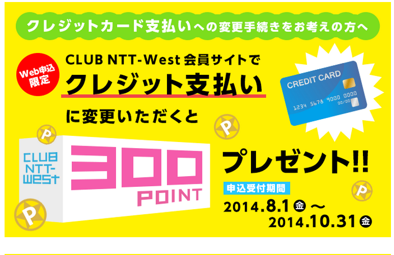 NTTが紙請求書基本廃止に伴い ClubNTTWestでクレジットカードへの切り替えキャンペーンを開催