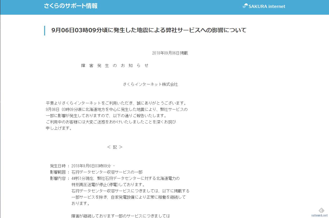 メンテナンス・障害情報・機能追加|さくらインターネット公式サポートサイト