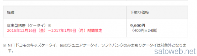 従来型携帯が 12月16日~1月9日までの期間限定で