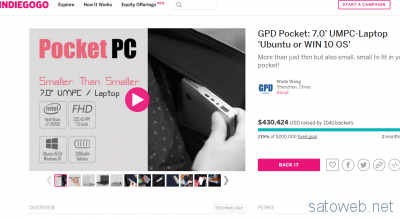 GPD Pocketのクラウドファンディング受付が開始、$399からの出資。 開始から半日で目標達成。