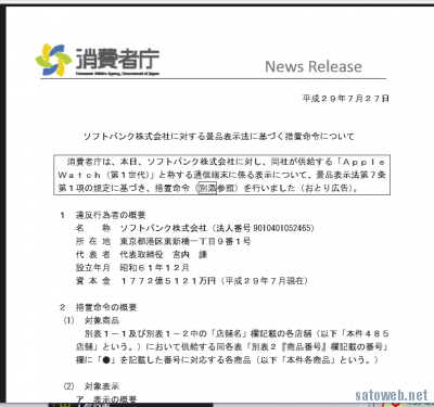 消費者庁、ソフトバンクへ措置命令発令。去年の「いい買い物の日」がらみで