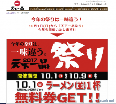 天下一品、 天下一品祭り今年も開催、10月1日から10月9日まで!今年は後祭りも?