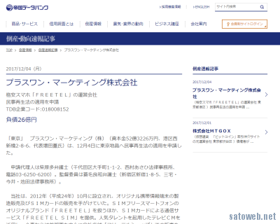 プラスワン・マーケティング株式会社 民事再生手続開始の申立て等に関するお知らせ | FREETEL(フリーテル)