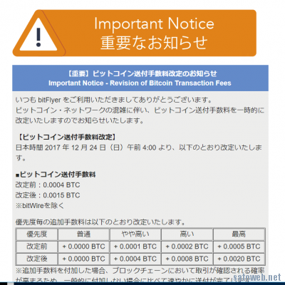 bitflyer、ビットコインの送信手数料を12月24日4時より期間未定で一時値上げへ、手数料だけで3000円前後に