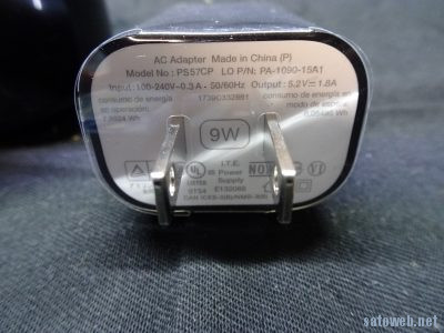付属ACアダプタは 9W
