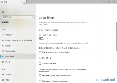 設定→個人設定→色→カラーフィルター