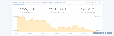 BTC、ひさびさの80万円割れ。上昇要因無きか