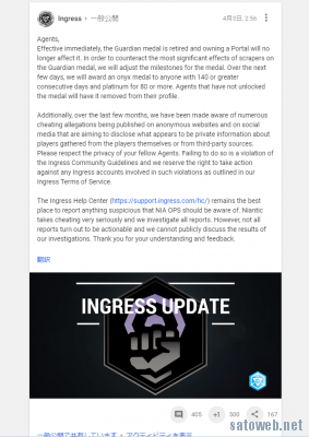 【ingress】Guardianカウント終了。不正行為に対する対処か