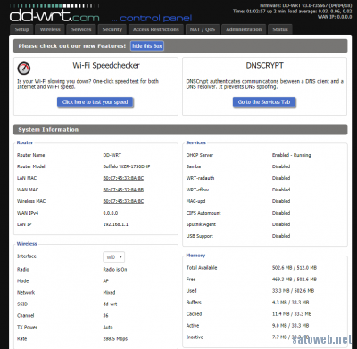 11ac対応「Baffalo WZR-1750DHP」にDD-WRTを入れてみる。