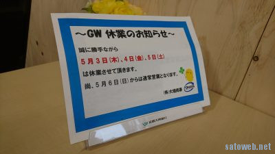 土日も営業している大畑商事ですがゴールデンウィーク中は