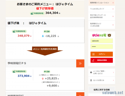 関西電力のサービス、「はぴe見る電」に登録していると値下げによる影響額の試算が簡易に可能となっている。