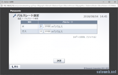 AiSEG側はパルスの線を接続するとパルスレートの設定画面が現れるので