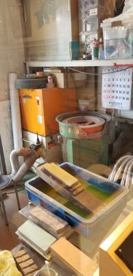 土日の昼間に研ぎの職人さんが来ていて作業するため