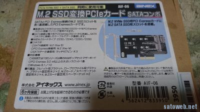 [amazonjs asin=”B01MUAHPSQ” locale=”JP” title=”アイネックス M.2 SSD変換PCI-Expressカード SATAコンボ AIF-06″]