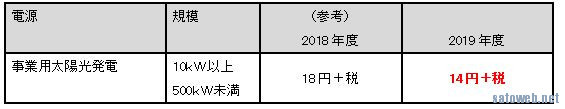 情報源: FIT制度における2019年度以降の買取価格・賦課金単価等を決定しました (METI/経済産業省)