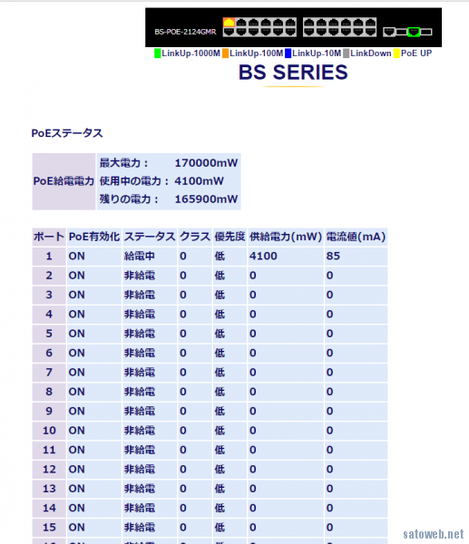 PoEで電源を供給するためのデバイスはBS-POE-2124GMRを使用
