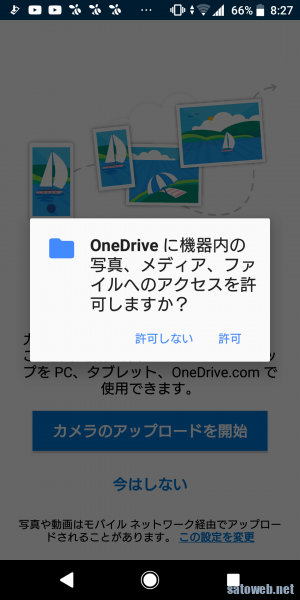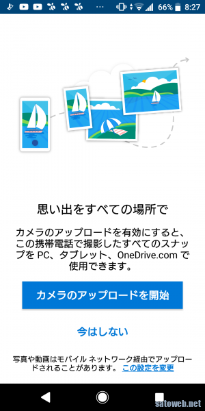 カメラアップロードを開始して