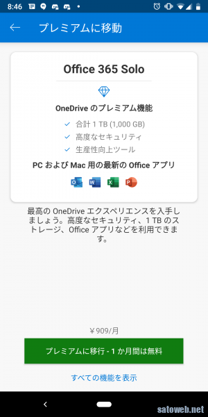 インストールするとプレミアムを進められますが戻ってスルー