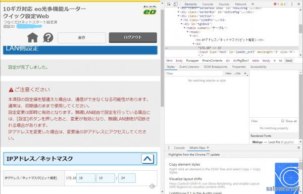 そしてもう一つ、IPアドレスの設定が 「192.168.」で固定となっており