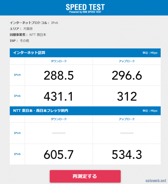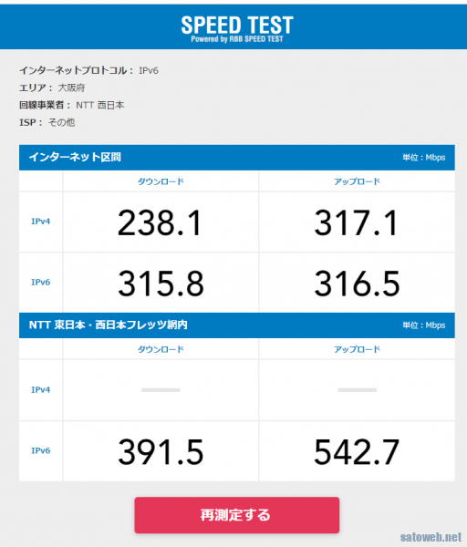 ということでNGN速度測定サービスがPowered by RBB SPEED TESTになったようです。