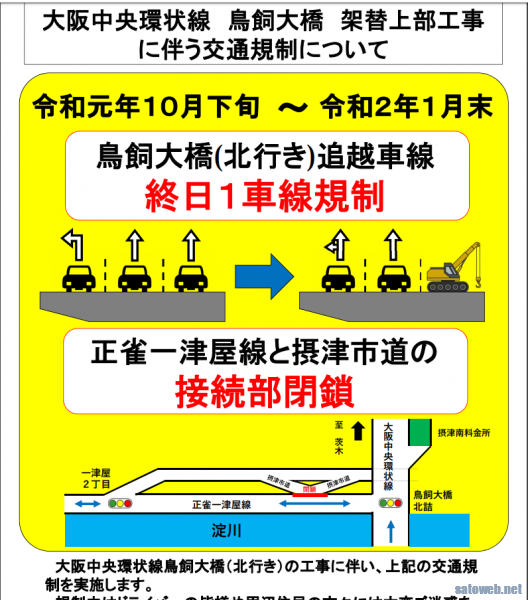 大阪府/【規制開始日決定】大阪中央環状線(鳥飼大橋北行き)の終日1車線規制及び正雀一津屋線と摂津市道との接続部閉鎖について