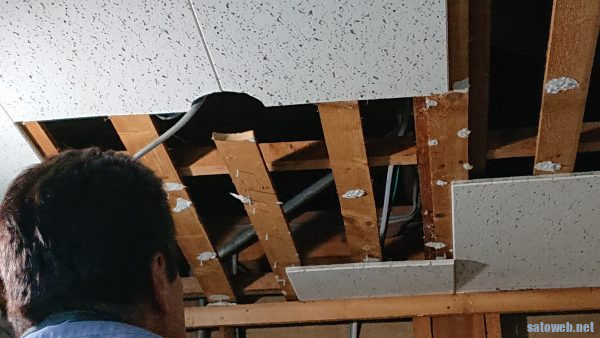 大体配管の通り場所は把握していたので 天井めくっちゃいましょう! ということで開口