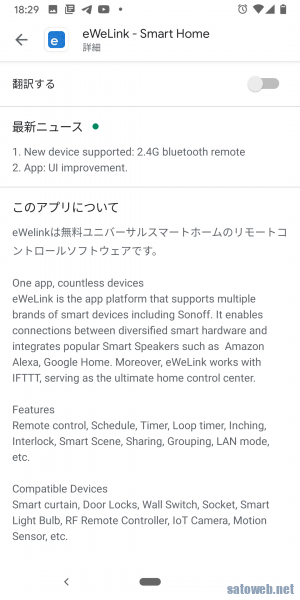 eWeLink、UIをガラッと変更。ようやくアプリ名がeWeLinkに by しおんぐ · 2020年4月19日 本ページはアフィリエイトプログラムによる収益を得ています。 Tweet Pocket Contents1 易微联2 インターフェイス3 ログ表示4 関連記事: 易微联 長らくアプリ名が易微联でしたが ようやくeWeLink表記に。 インターフェイス ログ表示 更新した際、電力単価の設定がリセットされているため再設定が必要。 旧UI 新UI月の変更が少し面倒に。 関連記事:宅配ボックスにつけたセンサの電池がすぐになくなるので何とかする。eWelinkのサーバーに障害?sonoff機器がネットワーク接続でエラーに。IoTアプリのeWeLinkで大規模に障害発生中。ネットワーク経由での操作ができない状態【解消済み】電力の計測もできるスマートスイッチ「Sonoff POW R2」を試す。Wimax2+対応モバイルWifiルーター「W01」に新色「Berry (ベリー)」登場、11月6日より販売開始。リーフに100Ahリン酸鉄リチウムバッテリーをサブバッテリとして追加してみた。車載PC環境に M4-ATXを導入!TS32GSSD25-Mのファーム更新メモ Tweet Pocket