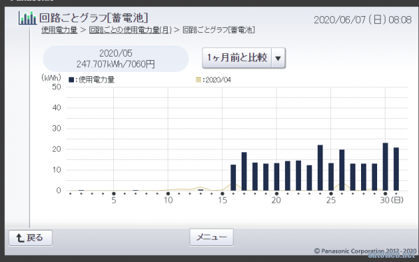 使用途中で回路名称やブレーカ構成を変更すると履歴データがおかしくなる模様。