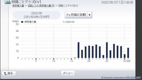 V2H使い始めるまでのリーフ充電のデータが消えてました。