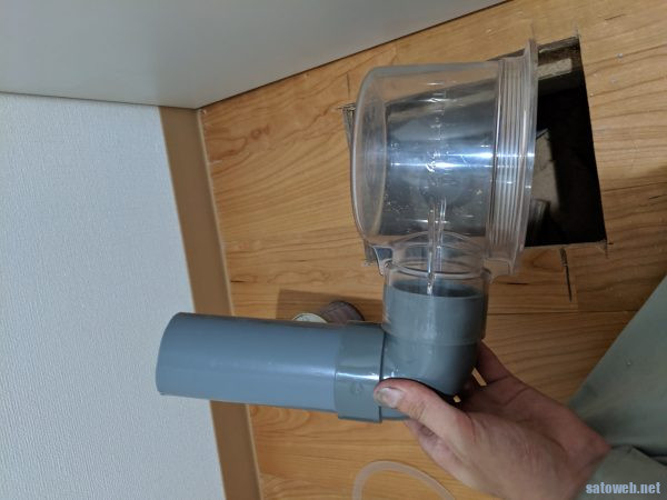 実際のサイズは570mmなので 排水ホースを下に回すことにより