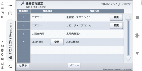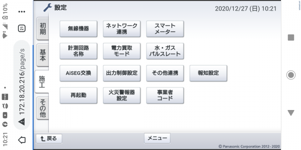 エコーネットライトアダプタの設定と同じく「設定」→「施工」→「ネットワーク連携」