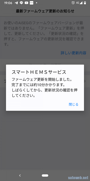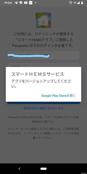 スマートHEMSアプリを起動すると アプリの強制アップデート。