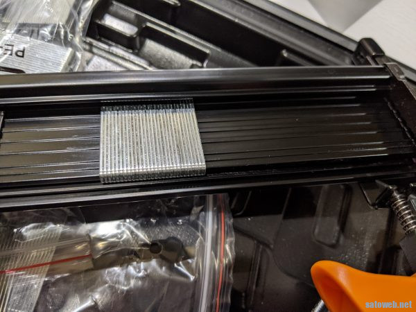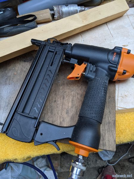 付属のタッカーとフィニッシュネイルの試し打ち。