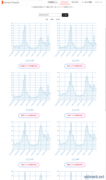 ようやっと1月25日の市場価格で一日を通して200円/Kwhを超えなくなったようです。