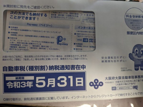 去年から堺市税であった軽自動車税はPaypayでの決済ができましたが