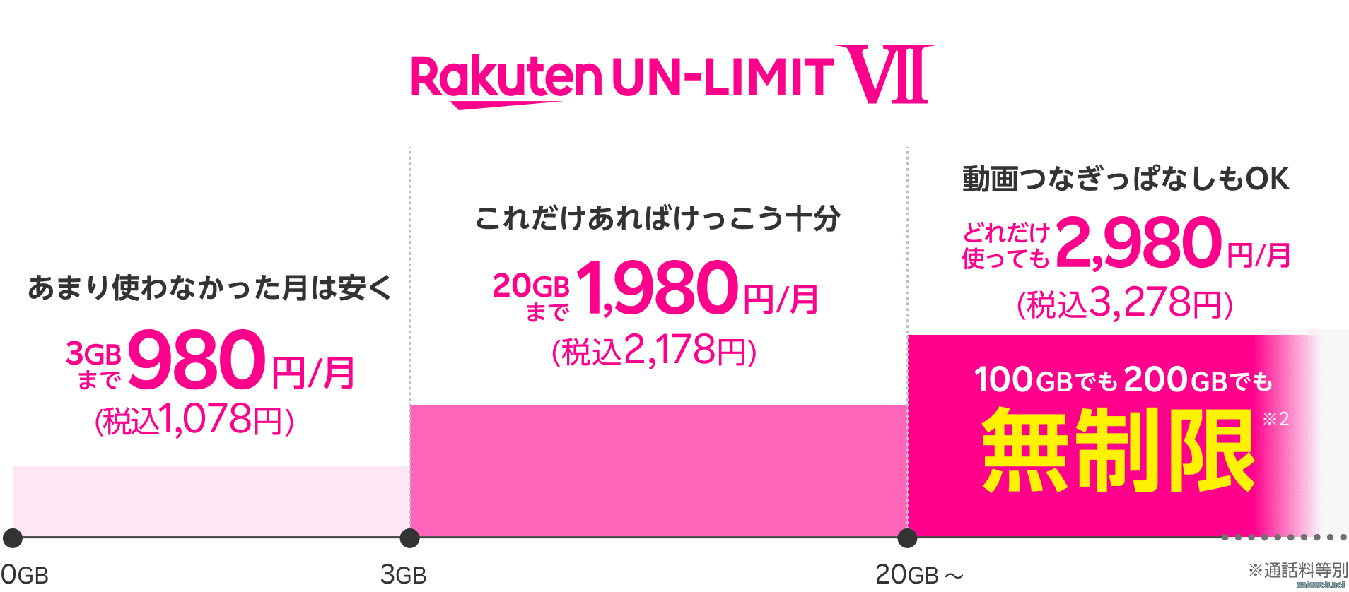 情報源: 2022年7月1日スタート予定!Rakuten UN-LIMIT VII(料金プラン) | Rakuten UN-LIMIT VI(料金プラン) | 楽天モバイル