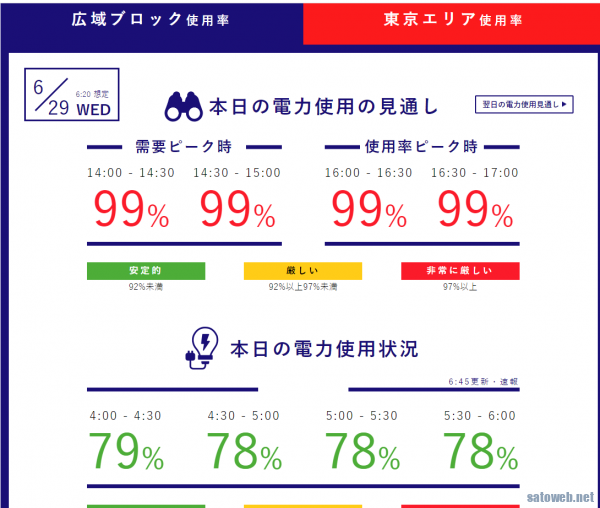 6:20に想定が更新され使用率/需要ピークの見通しが99%に更新される。