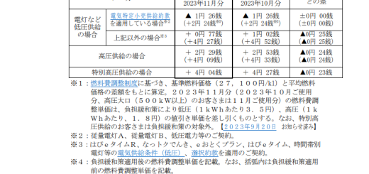 | 電気供給条件(低圧)を適用している場合 | +6.14円 | +4.90円 | +1.24円 |