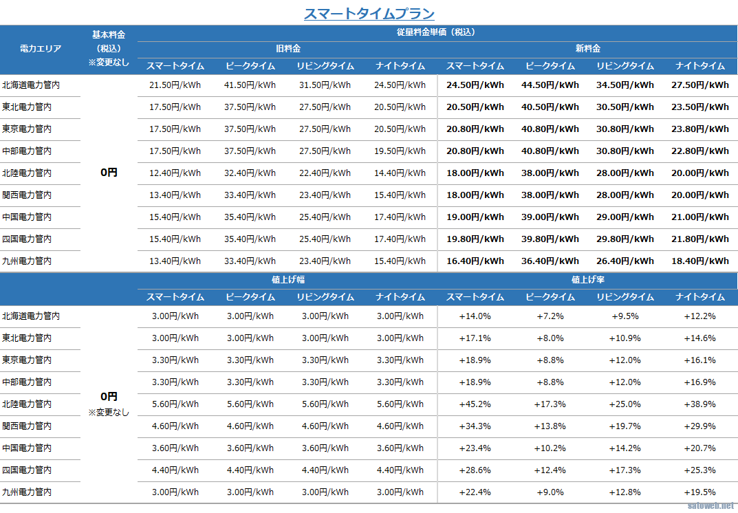 全時間帯 同じ値上げなので 時間帯によっては+46.2%という恐ろしい値上げ。