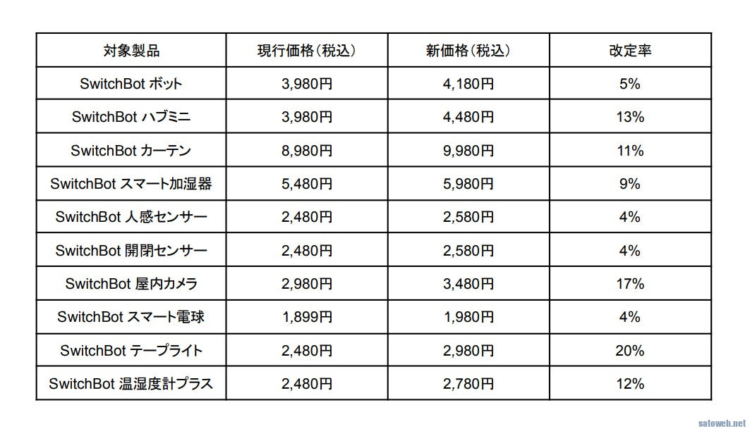 情報源: 【SwitchBot】一部製品の価格改定に関するお知らせ|SWITCHBOT株式会社のプレスリリース