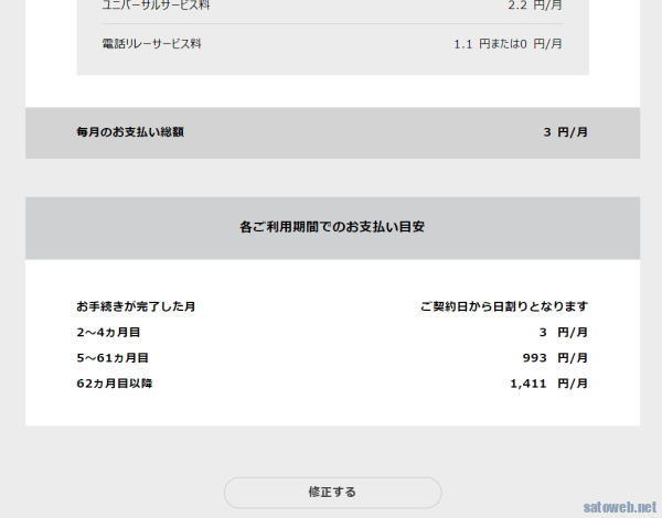 当初3か月の月額は ユニバーサルサービス料と電話リレーサービスで 3円