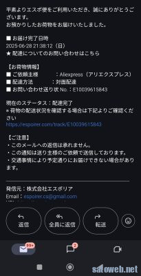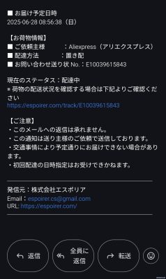 Aliexpressのラストワンマイル配送業者「エスポリア」配送メールが配信されるように