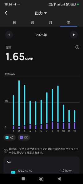 一年間での 入力値 - 出力値 の差分は 300Kwh