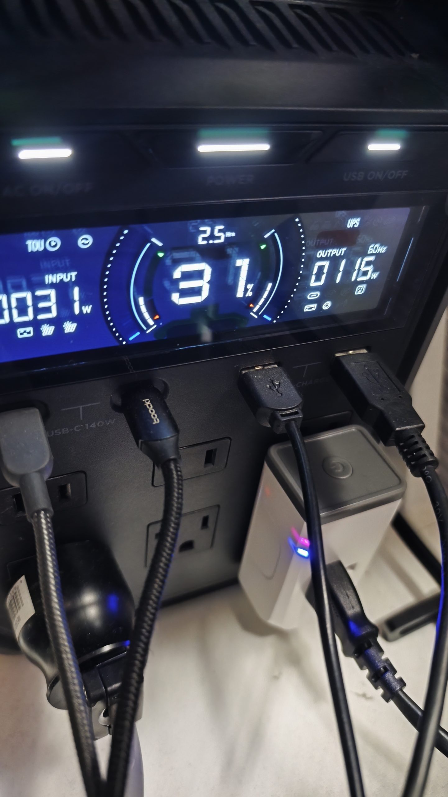 設定値を下回ると ACから最低限の充電+出力への電源供給が行われる