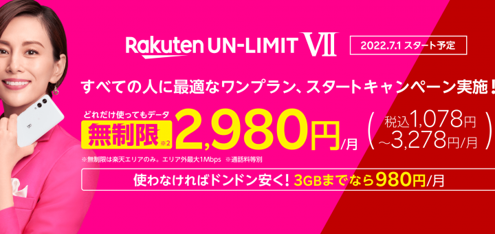 0 携帯 2022年5月13日 楽天モバイル、Rakuten UN-LIMIT VIIを7月1日スタート。旧来プランも強制移行で無料維持は不可に。 すべての人に最適なワンプラン「Rakuten UN-L...