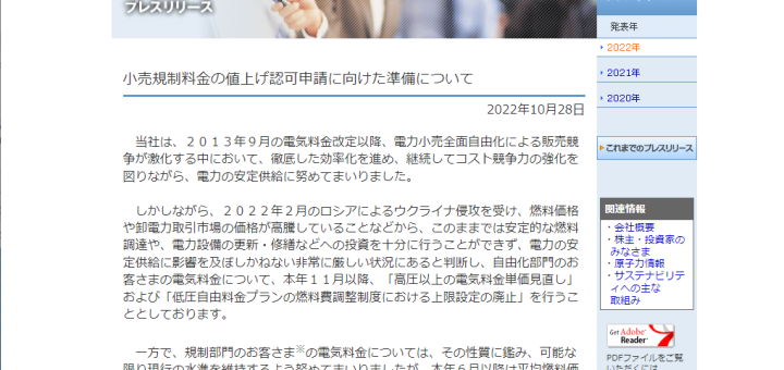 関西電力では出てきていませんが 基本価格が赤字ということで 規制価格...