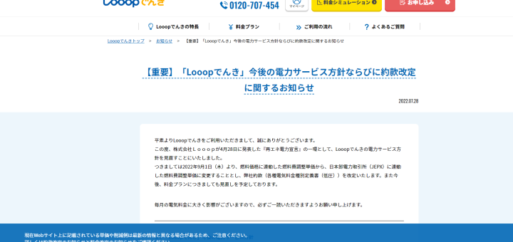市場連動型のものに燃料調整費を変更したLooopですが ついに市場価...