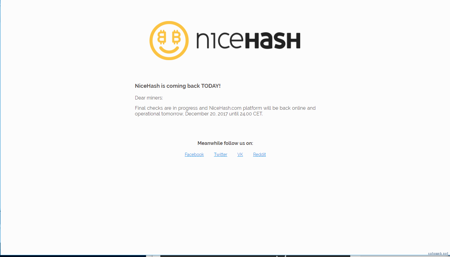 0 仮想通貨 2017年12月22日 お帰り、「NiceHash」。アタックされダウンしていたNicehashが2週間ぶりの復活。攻撃前の未払い金は? NiceHashが4時間以上にわたって停止中。 サイトはメンテナンス...